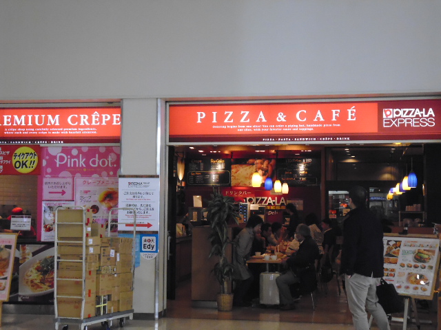 大阪の伊丹空港にあるピザ屋のピザーラです。朝からピザは少し重いという人には飲み物だけでもいいし、ほかにも選択できるものがあります。