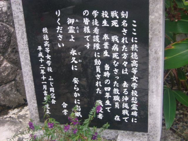 波の上ビーチに向かう際の途中、大典寺に立ち寄りましたが、本堂向かって右手にひっそりと設置されていたのがこちらの碑でした。沖縄にはこうしたスポットが沢山ありますので、その都度祈りを捧げておくべきだと思いますが、特にここは女学校跡ということもあって、同じようなスポットとしてより有名なひめゆりの塔と比較するとあまり知られていないこともあり、やはり人命の尊さには差はないと思いますので、もっと多くの方に弔いの祈りを捧げて頂ければ、と思いました。