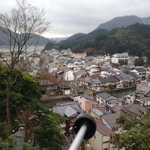 ここからの眺めは、温泉街が一望でき、また、円山川の河口・日本海をも眺められる。