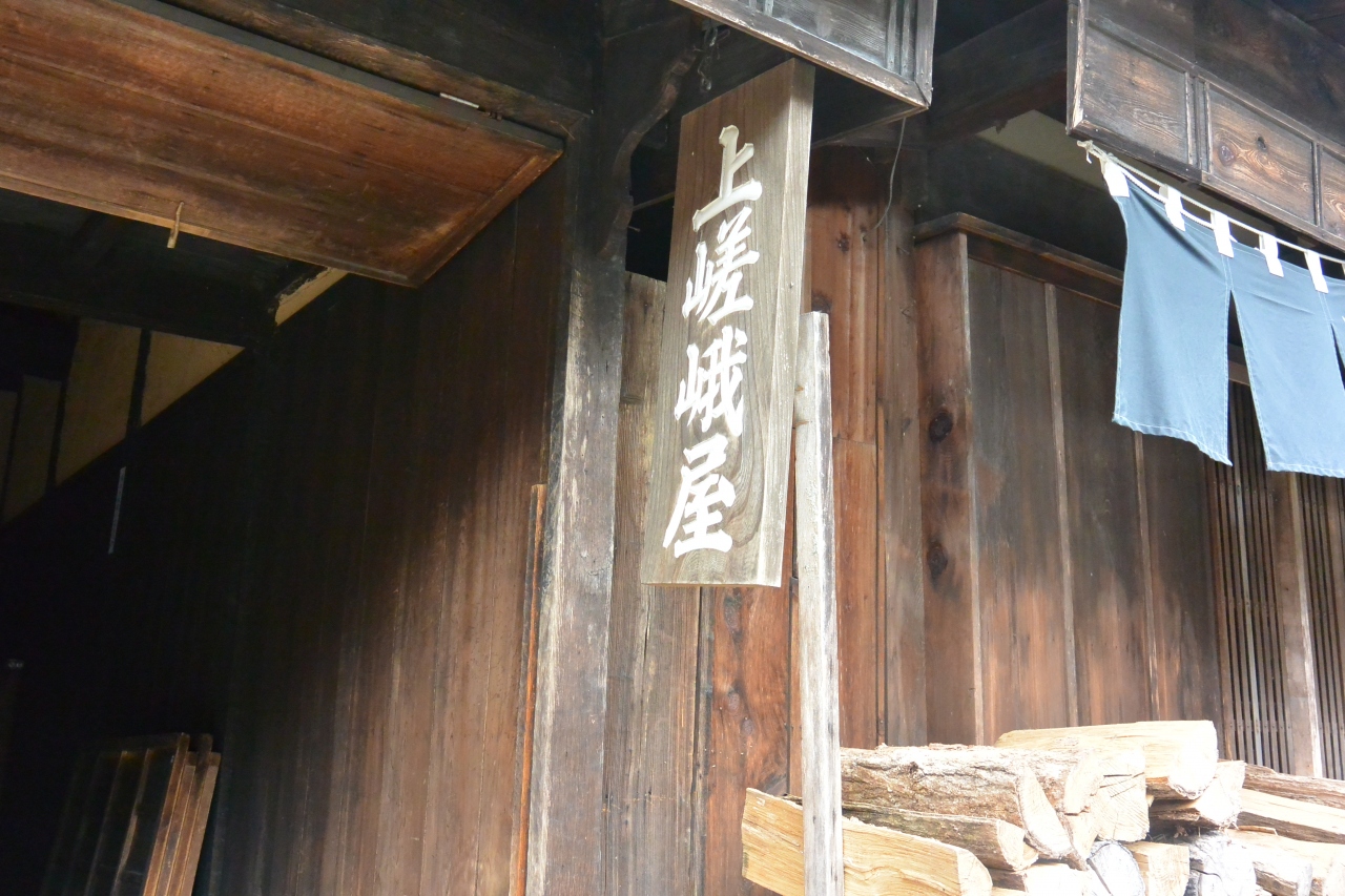 寺下地区にあり、江戸時代中期の木賃宿です。庶民が泊る安い宿が残っているのはとても珍しいと思います。このときは中で、女性が笠を手作りして販売していました。妻籠は電線も地中に埋めているのか、電線も電信柱もありません。
