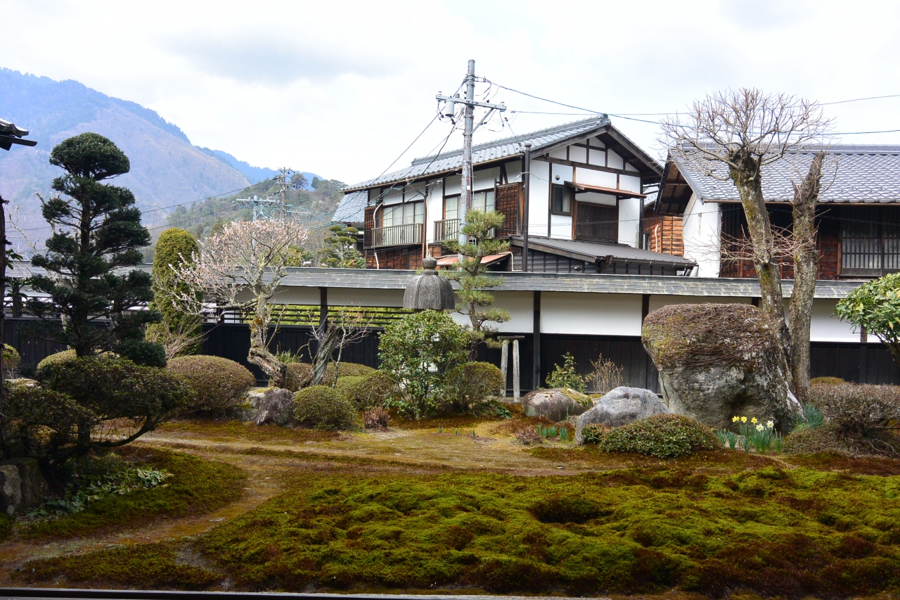 脇本陣奥谷のお座敷からその庭越しにちょうど見えます。室町から戦国時代にあった山城で、城主の木曽氏が武田家側から織田家に寝返ったことが、織田が武田を滅ぼすきっかけにもなったそうです。江戸時代初め一国一城令により廃城となりました。