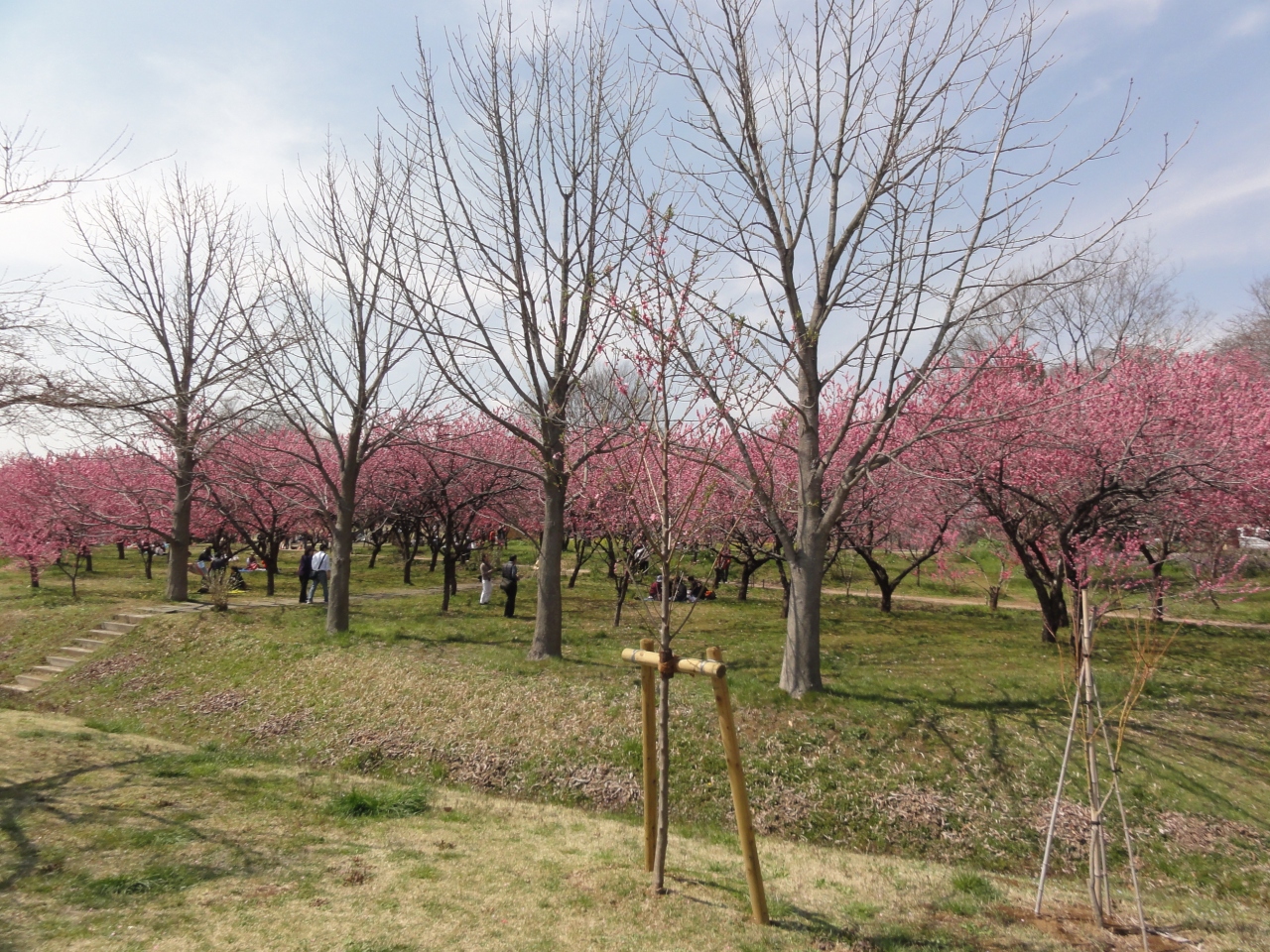 沼や池、有名な建築家が設計したお洒落なカフェもある公園です。桃祭り開催中だったので駐車料金が掛りました。桃林は日本一とか、江戸時代初期に、古河藩主土井利勝が江戸で家臣の子に桃の種を拾い集めさせて古河に送り、農民に育てさせたのが始まりだそうです。初めて桃の花見に行きましたが、平日の午前中で渋滞発生してました。