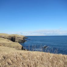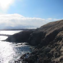 なお、灯台から遊歩道を少し下った波打ち際近くにある車石は、柱状節理の岩がハリネズミのように丸く巻いた奇岩です。