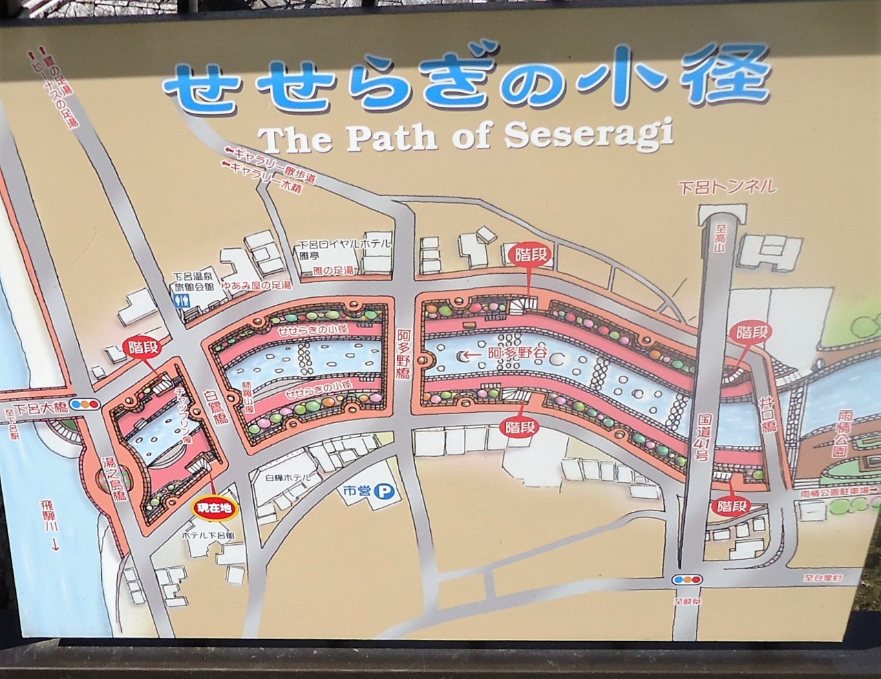 下呂温泉街を流れる阿多野谷沿いには、せせらぎ小径という散策路があります。