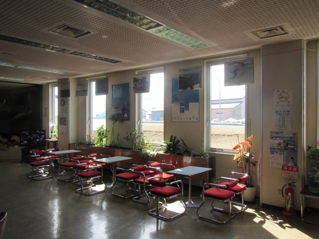 椅子やテーブルが置いてあり、テレビが点いていて、冬に訪れた時は暖かく暖房が効いていました。