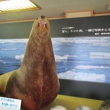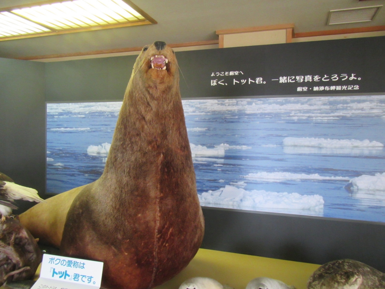 体長4mほどで、道内最大級のトドの剥製ということでしたが、魚を食い荒らすためか、剥製にされてしまい、“一緒に写真をとろうよ”ということで観光客を出迎えています。