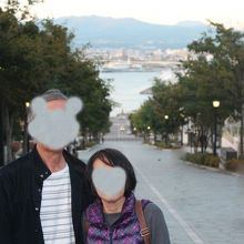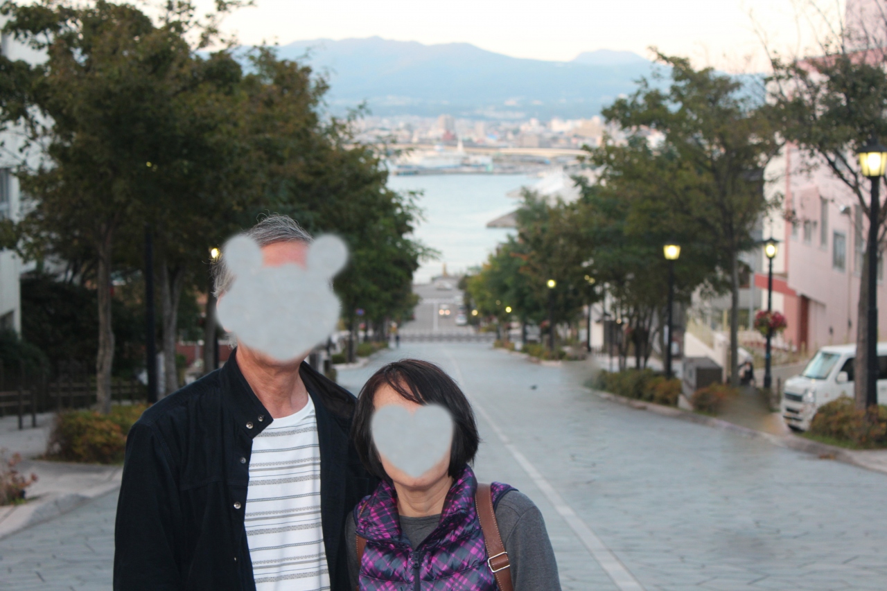 新幹線の開通にともない、脚光を浴びている函館の観光名所を紹介するテレビ番組やテレビドラマのロケ地としてもよく見かける有名な美しい景色です。私たちが坂の上に立ったのは夕方で空は薄曇りでしたが、太陽の光がいっぱいある青空の下ならもっときれいだったと思うと少し残念な気がしました。