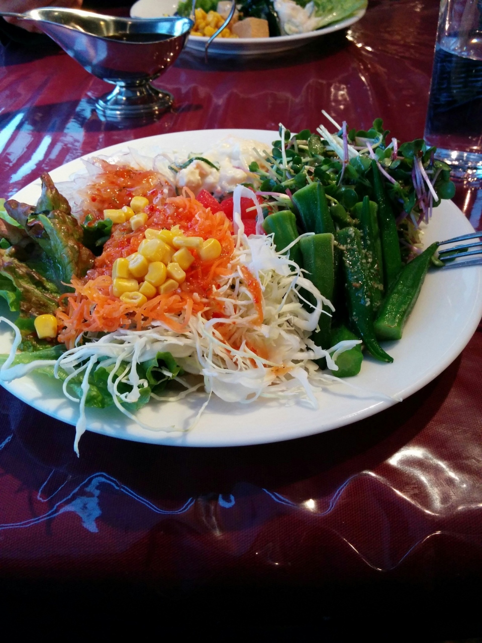 特色としては、メインディッシュを注文するとサラダバーなどが食べ放題になるというところです。