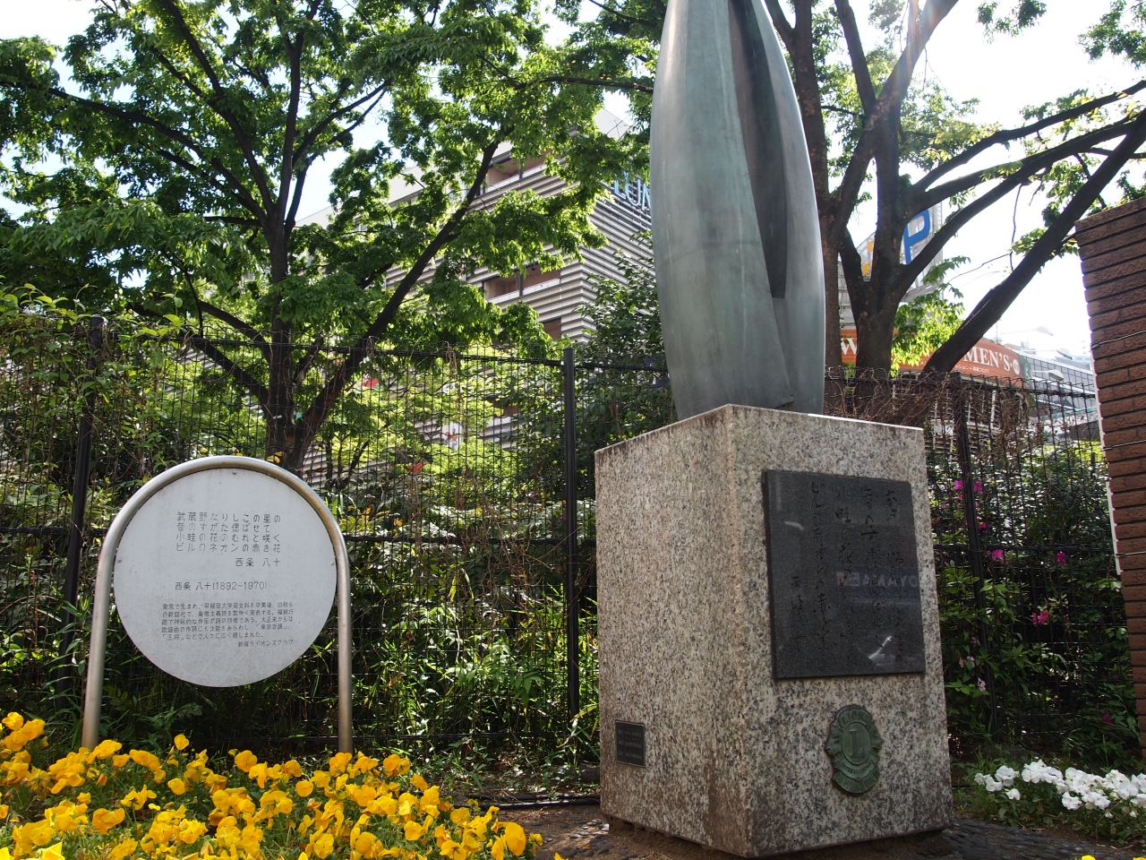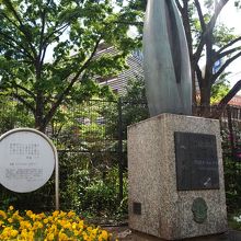 それほど小さなものではないのですが、前に植込みがあったり、車や人通りが多かったりして、それと意識していなければ気づかずに通り過ぎてしまうような雰囲気で雑踏に埋没していました。