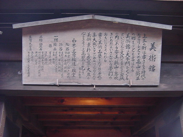 高山市の中でも古い街並みが残り、多くの観光客が集まる地域にある美術工芸館です。安土桃山時代のさまざまな品物を見ると、高山の古い街並みと合わせて感動も大きくなります。陶器は鎌倉時代のものも。調度品や民芸品も多数あります。