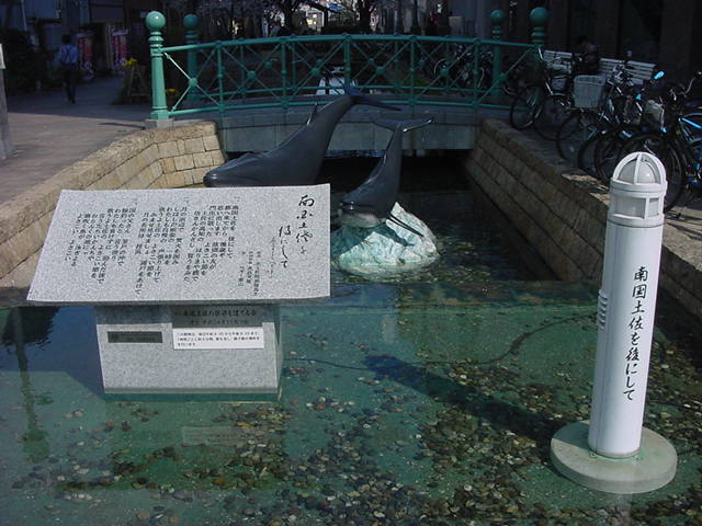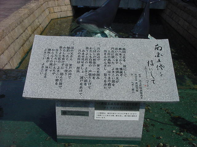 土佐観光の中核となるはりまや橋交差点の近くに位置する歌碑。ペギー葉山さんで有名になった歌ですが、その歌詞が刻まれているとともに、そのとなりには灯台のようなモニュメントも。からくり時計のすぐ近くにありますので、探してみてください。