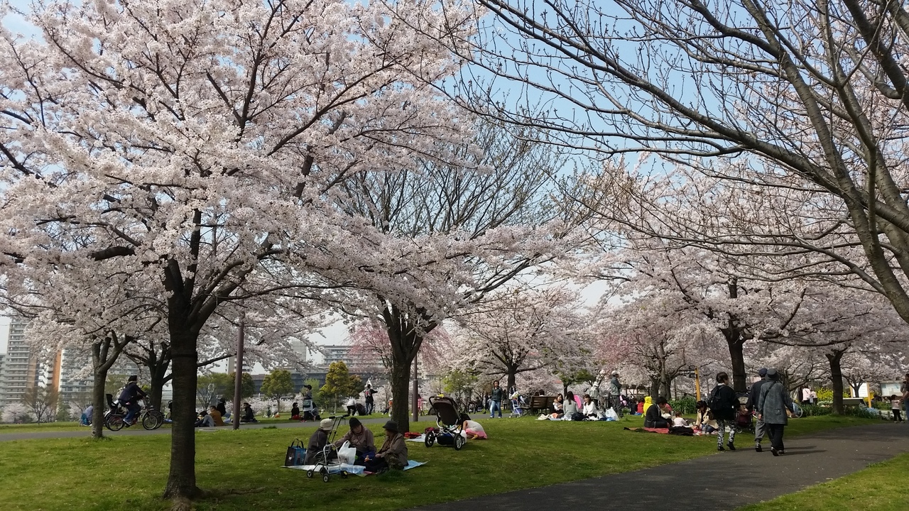 シートを引いてお花見したり散歩されているかたが沢山です。