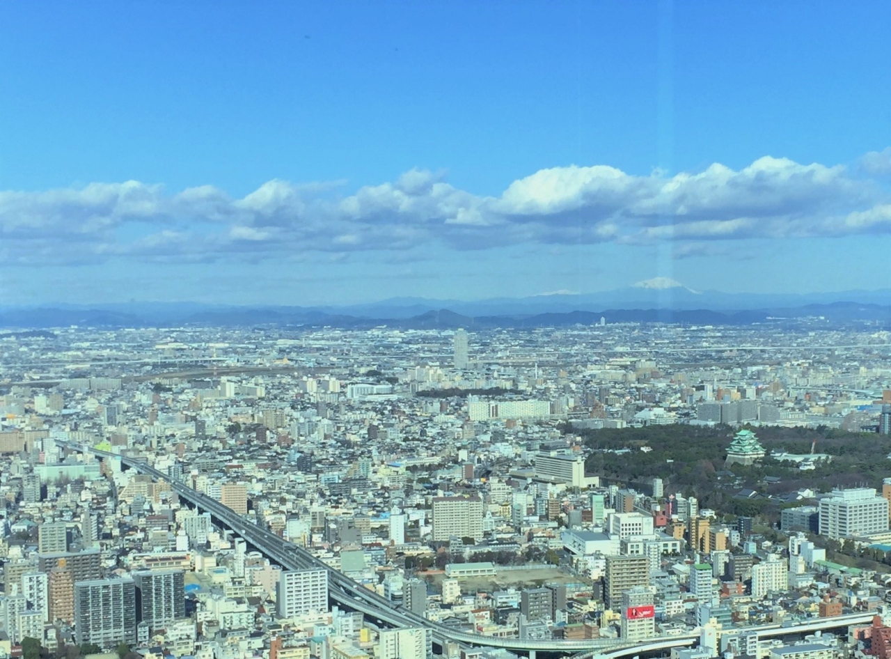 名古屋城も見え、遠く雪を抱いた山々が綺麗でした。