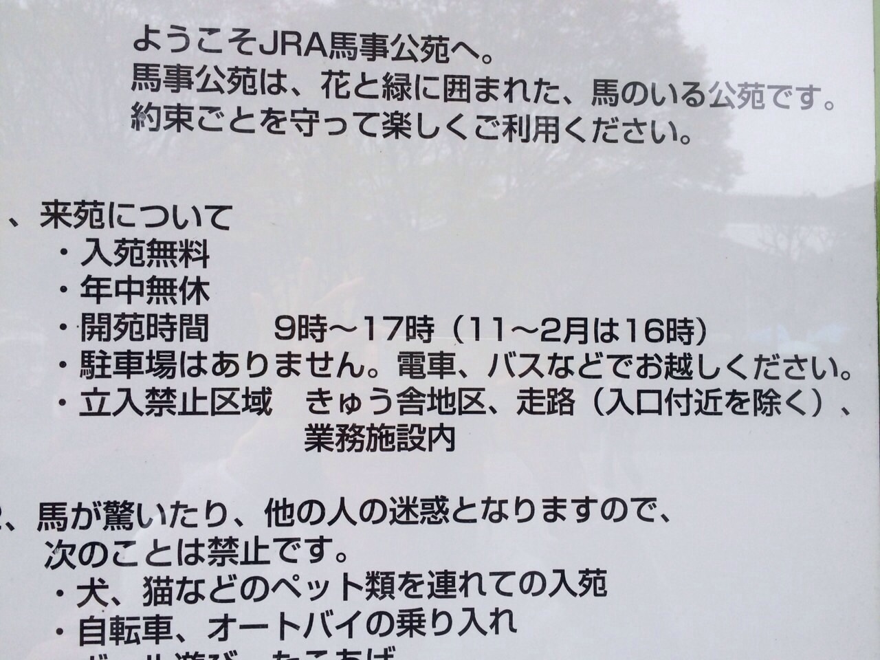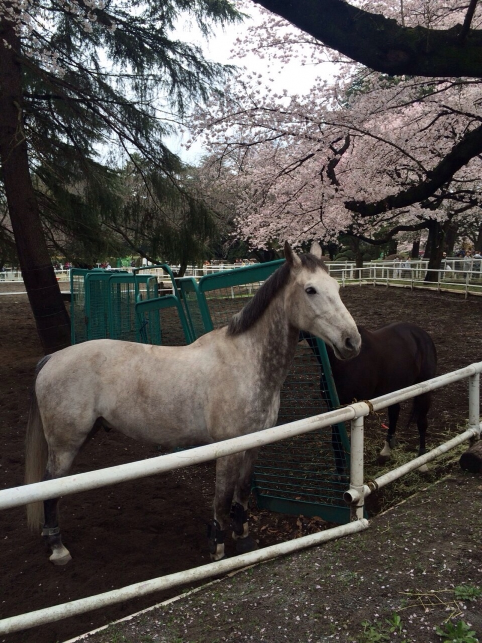 桜まつりの日に行きました。来年からはオリンピックの工事のため見られなくなるとHPに書いてあったので今年絶対行ってみたかったんです。駅から遠いところにあるので、バスが便利だと思います。バス停からすぐです。桜がとてもきれいで、桜の下に馬を見ることもできて、小さい子どもにはすごく良い場所だと思いました。