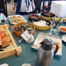 JTBのツアーの昼食がこちらでした。カニ、サザエ、ホタテの食べ放題がついたプランでした。
