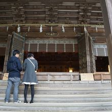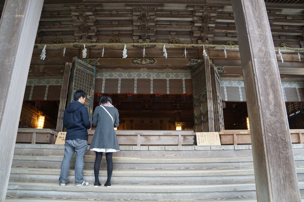 金刀比羅宮 御本宮は、急な石段を登り切るとそのすぐ前。こんなに時間をかけて上ってきたのに、あまりにもあっさりと前に現れるので、ちょっと物足りなく思う人もいるかもしれません。そして、そのまま本殿の階段を上がってお参りしますが、それもあっけない。ここまで上がることが大変だし、そのプロセスが大事だということでしょう。