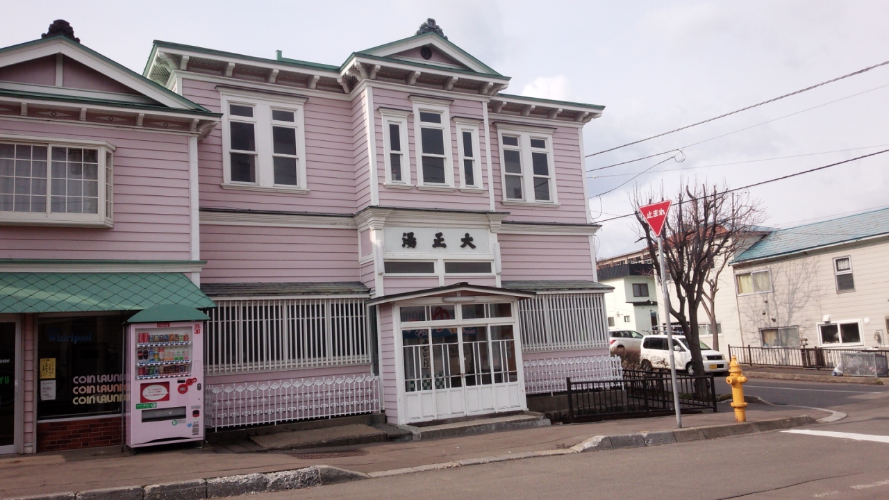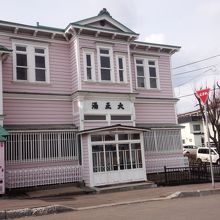 ピンク色のかわいい洋館のような外観で、最初はカフェか、昔の洋館が残っているのかなと思って近づいたのですが、お風呂屋さんでした。