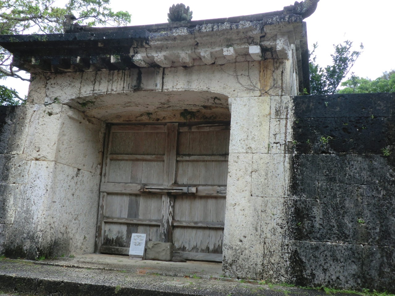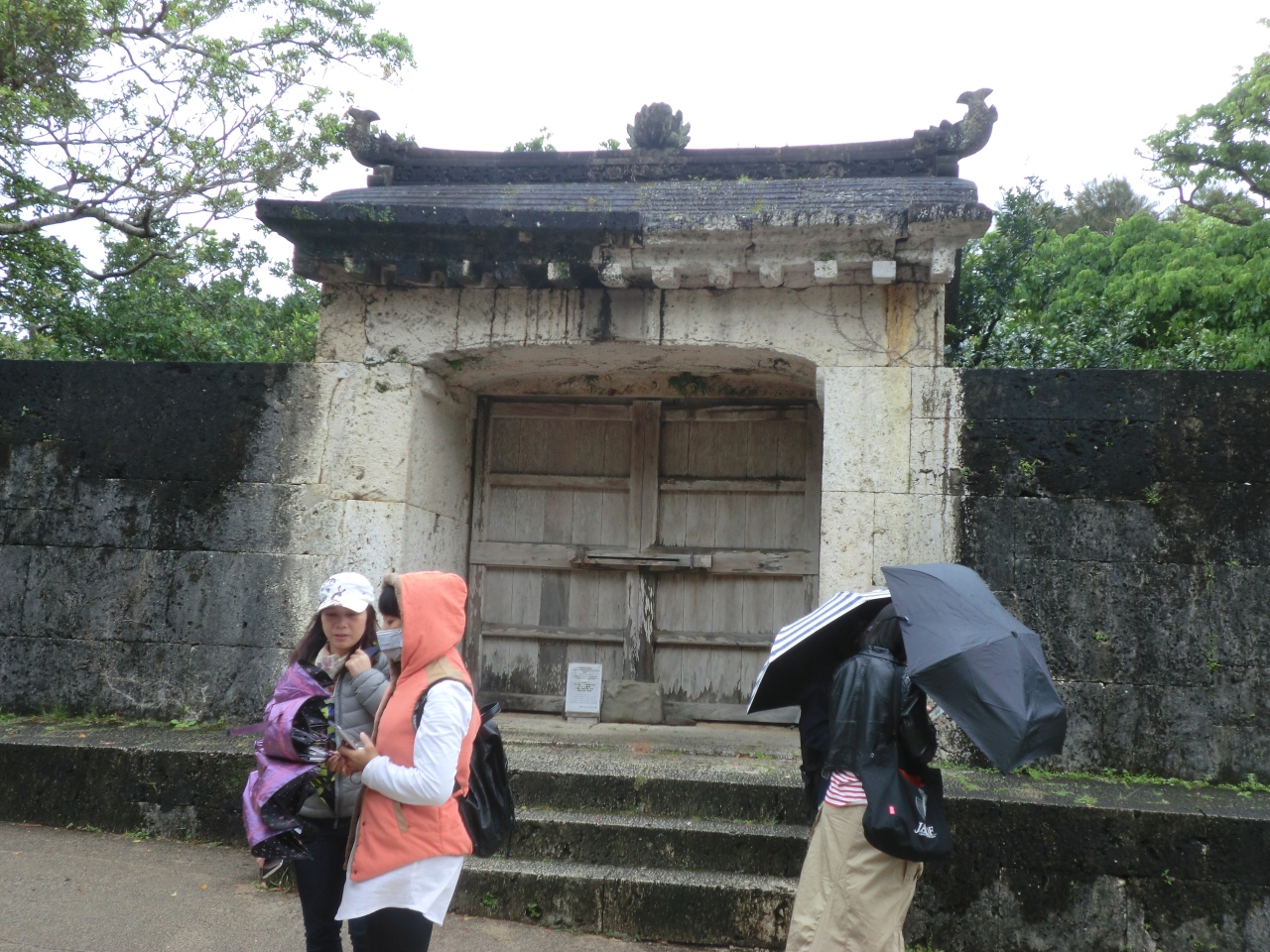 首里城公園内の守礼門と歓会門の間にあり、道を上って行くと左手に見ました。世界遺産との案内板がありました。バスガイドさんの説明を聞いたのですが、「御嶽」(拝礼所)としか覚えていませんでした。旅行後にネットで調べてみると、ここは国王が首里城を出て各地を巡礼する際に、安全祈願した礼拝所であることがわかりました。「そのひゃんうたきいしもん」と、読むのだそうです。超、むずかしい!1回説明を受けただけでは、なかなか覚えられません。
