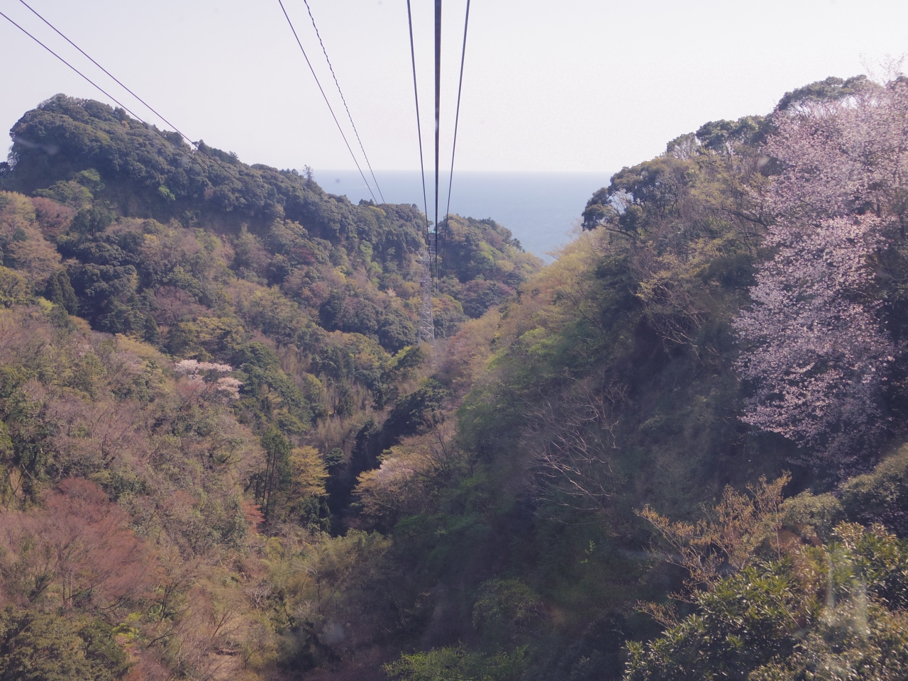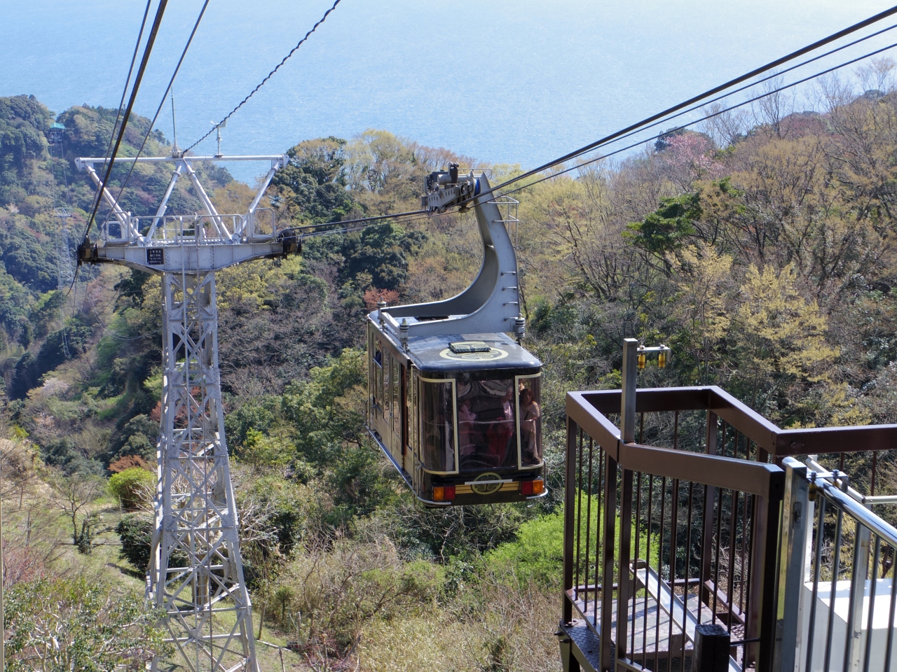 日本平ロープウェイは、日本平と久能山との全長1065mを5分ほどで結んでいます。