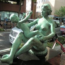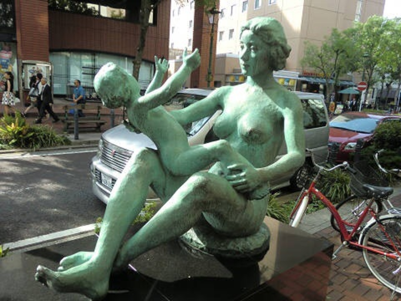 1976年日本アイスクリーム協会より、アイスクリーム発祥の地を記念して、横浜馬車道通りにこの太陽の母子像が寄贈されたようで、一応、アイスクリーム発祥の記念碑を兼ねているようです…