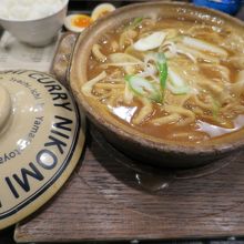 カレー味の味噌煮込みうどんで、生煮えのようなうどんが合います。同じ山本屋なのに、こちらのうどんは値段が安いのも良い所です。