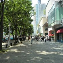 この公園は幅25mで、ランドマークプラザとクイーンズスクエアの中間部分にあたるヨーヨー広場を起点に約700mにわたって一直線になっています。