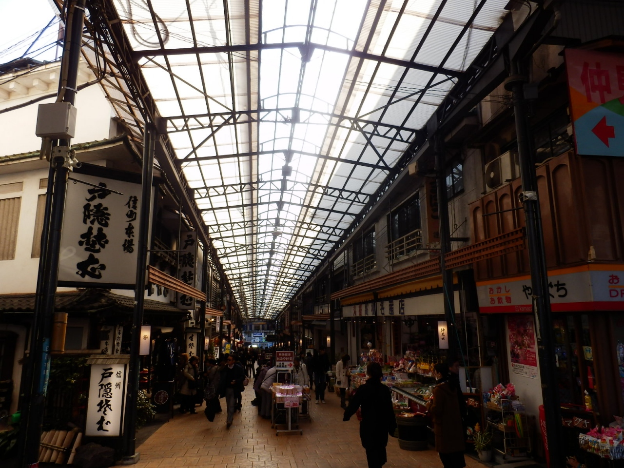熱海駅を出てすぐ右手に曲がると、2つの商店街の入口が見えます。どちらもアーケードに覆われた商店街ですが、左側にあるのがこちらの仲見世商店街です。右側の平和通り商店街の方が、道幅が広く観光客の往来も多いため、仲見世商店街は裏道っぽい雰囲気でした。しかし、お土産店や飲食店は並んでいて、人気店には行列が出来ていました。
