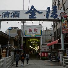 金刀比羅宮の表参道から市街の方にまっすぐ進んだ先にあるアーケード商店街が新町商店街。昔の高松街道に相当するレトロな商店街ですが、いくつかの名物店があって、入り口にある肉の平岡や和菓子のへんこつ屋とかお勧めです。