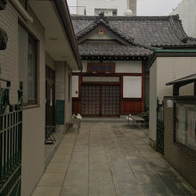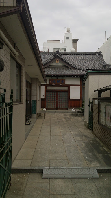清澄庭園のすぐ近くで駅から庭園の入り口に向かっていくと右手に本誓寺があって、その山門脇の本誓寺の参道を入るとすぐ右手にあります。参道と言ってもかなり狭い参道です。ちょうど、清澄庭園と清洲橋通りに挟まれたエリアの奥まった場所にあります。こちらの寺院自体はすぐ目の前の本誓寺の塔頭として創建された浄土宗の寺院です。参道に面して石を組んだ石柱と鉄扉の山門があって、境内に入るとコンパクトな本堂が正面にあります。特段、特徴のある本堂ではないです。境内も都心立地のため広くはなく、ぎゅっと詰まった感じです。