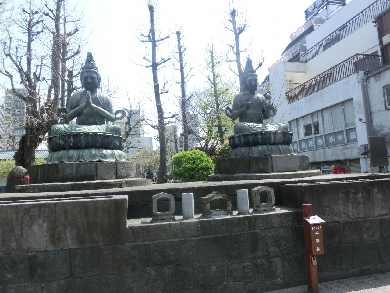 右が観音菩薩、左が勢至菩薩で、二体は金銅の坐像。