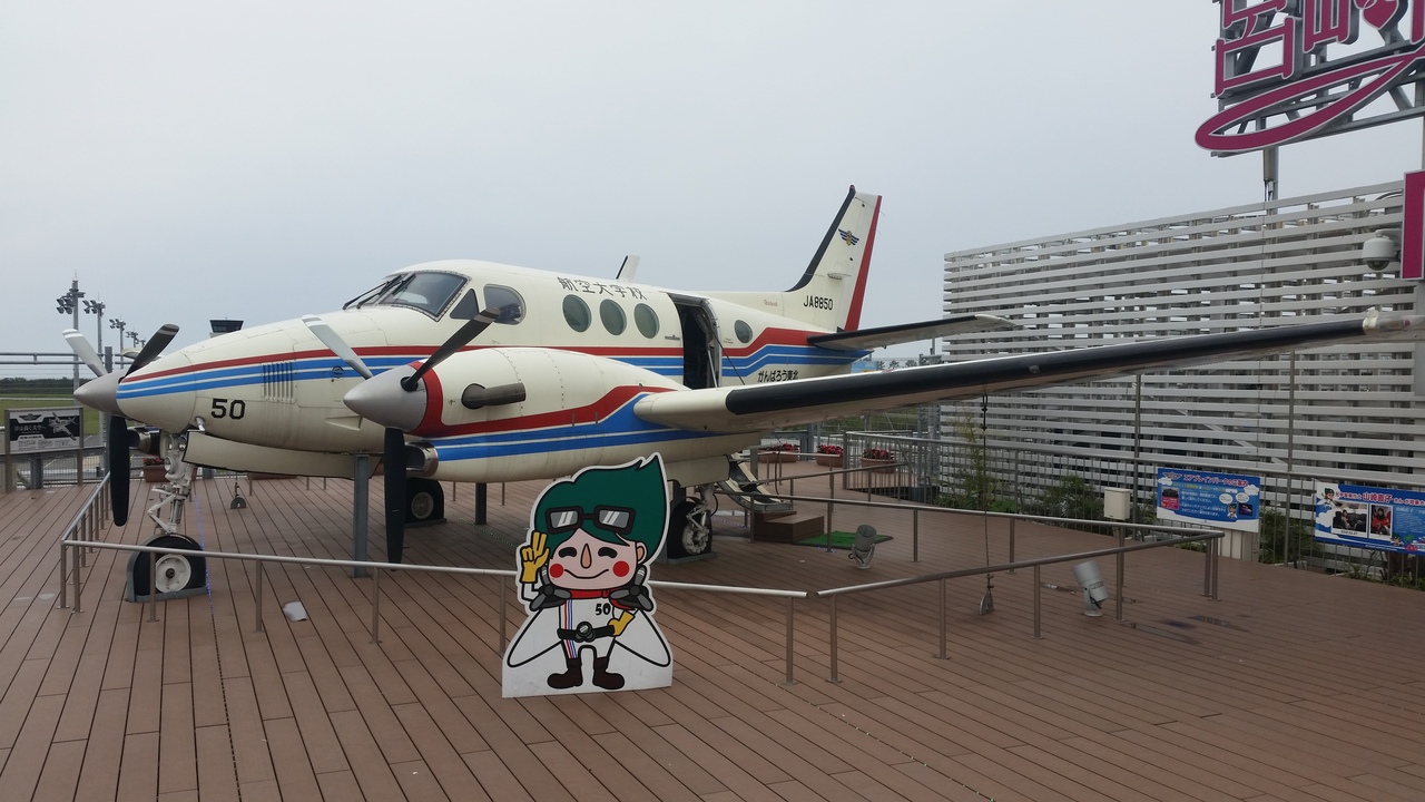 宮崎空港の屋上の展望デッキの片隅に宮崎エアプレーンパークがあります。4月の天気の余り良くない日でしたが、春休みで飛行機の写真撮影や離発着を見に来てる人たちがたくさんいました。離発着が余り多くない空港なので待ってる時間が長くなってしまいます。