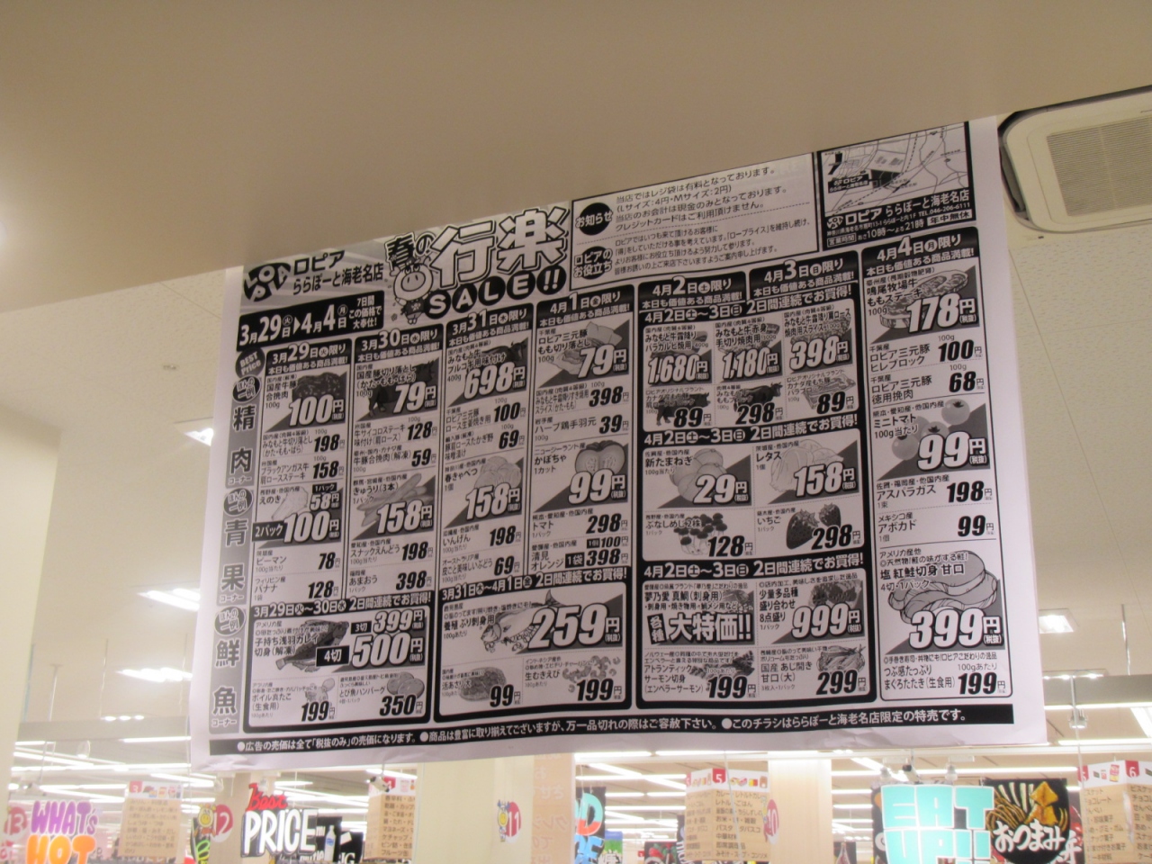 また、店の前にはチラシが掲示されていて、他のスーパー同様、日替わりの特売などもやっているようでした。