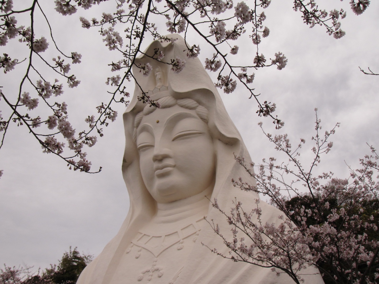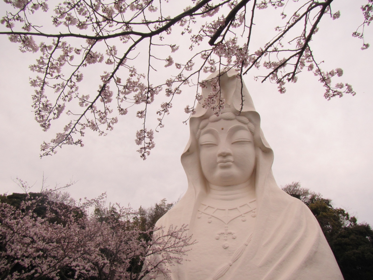 晴れの日も雨の日も1年中見守ってくださる観音様ですが、特に4月上旬の桜の頃はきれいです。