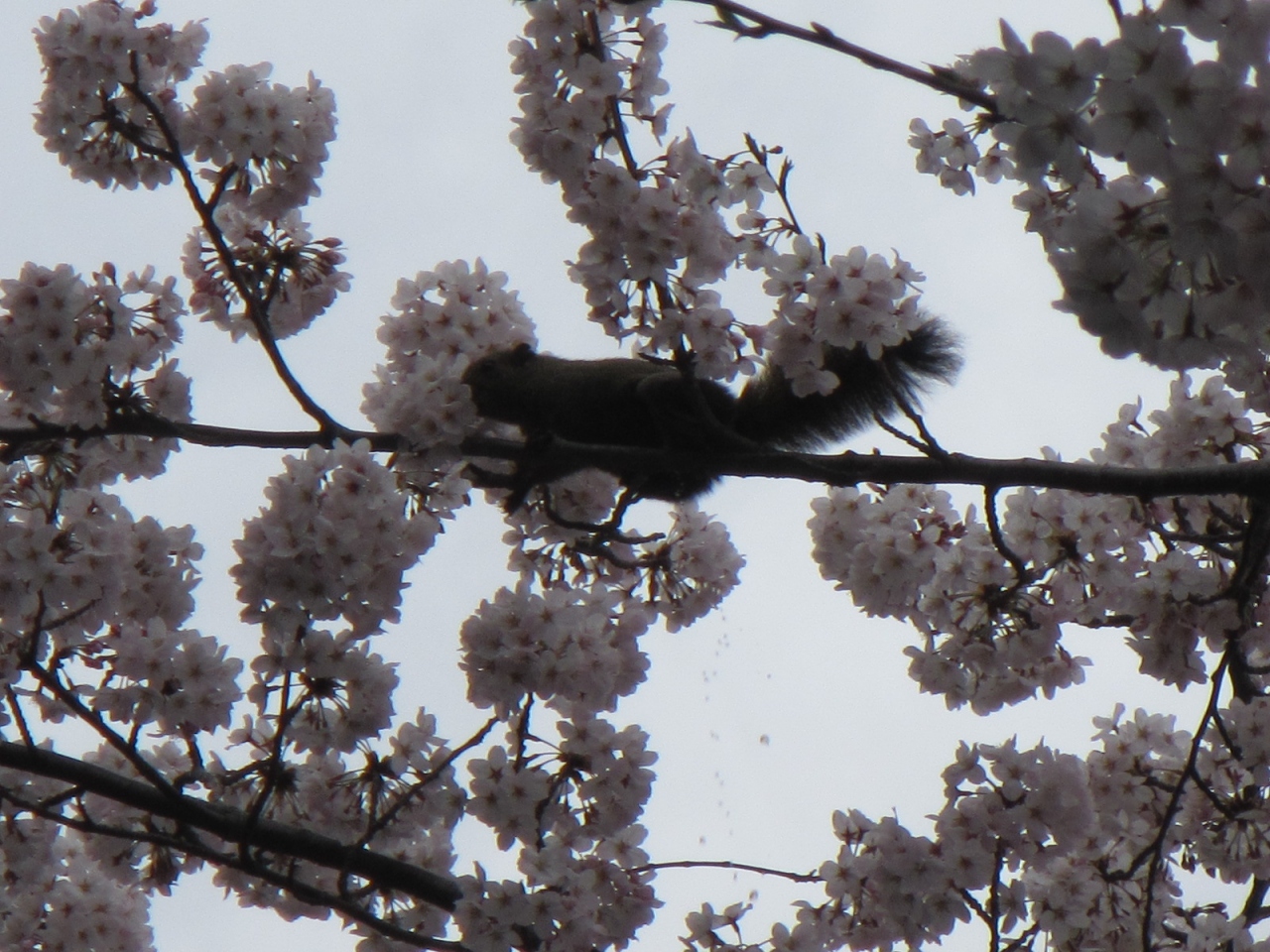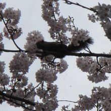 訪れた時は、花の枝の先でリスが花を食べていました。