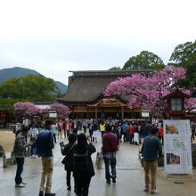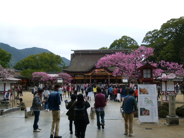 今日は学問の神様で有名な菅原道真の太宰府天満宮の参拝です。参道から太鼓橋、そして通路に飾られた御神燈や堂々と建っている楼門を通ってここ「御本殿」まできました。ちょうど梅の咲く時期にきましたので飛梅など気持ちよく咲いていまます。初詣の参拝客は九州一を誇っていますが、さらには全国的に有名な曲水の宴も執り行われています。国の重要文化財に指定されています。