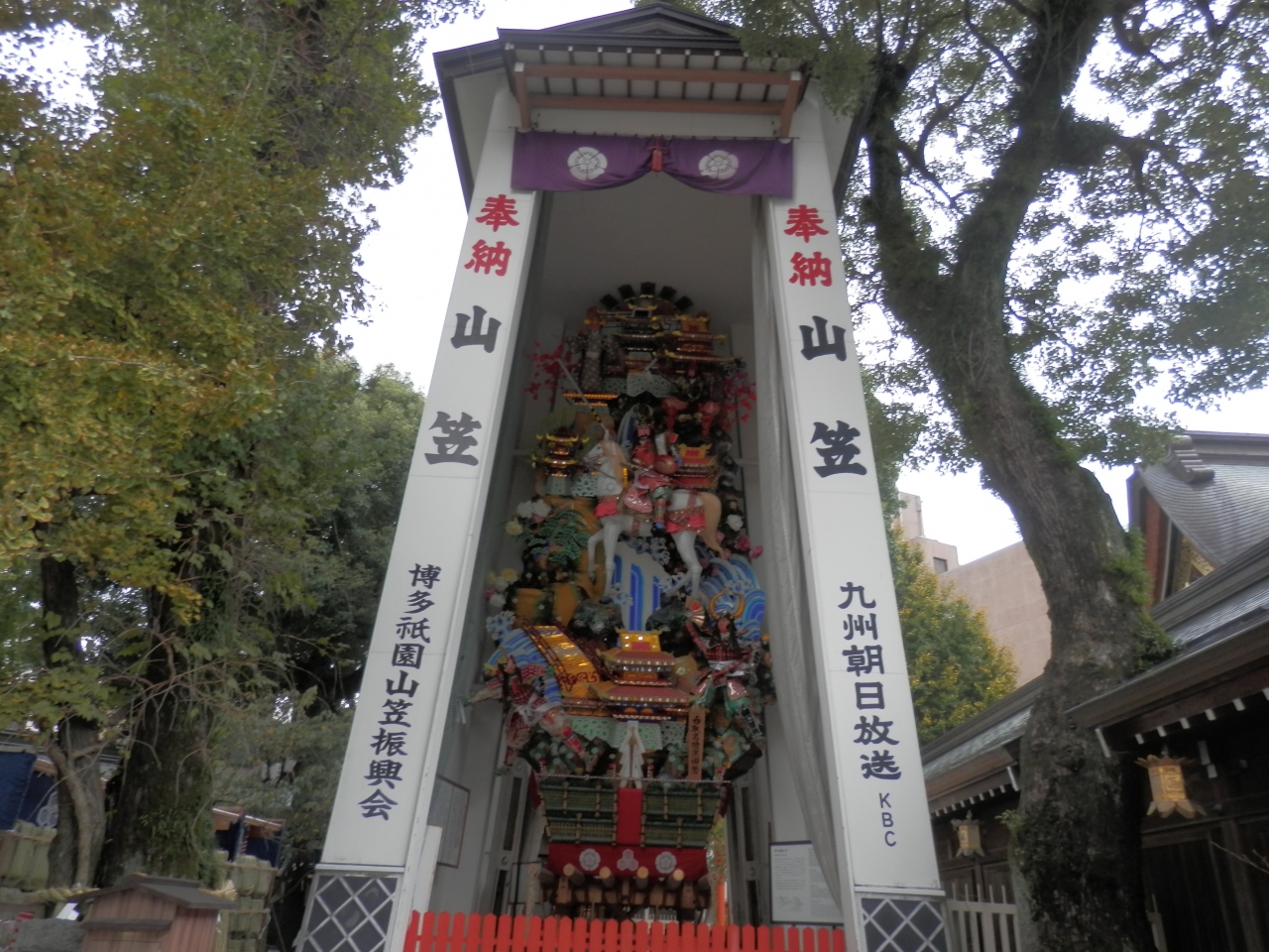 商店街をプラプラ歩いていると櫛田神社にたどり着きました。特に下調べもせずに名前は聞いたことがあるぞという程度でしたがきてみると山笠があってびっくりです。常設されているのも知らなかったのですが大きさと豪華さがすごくてみとれてしまいました。