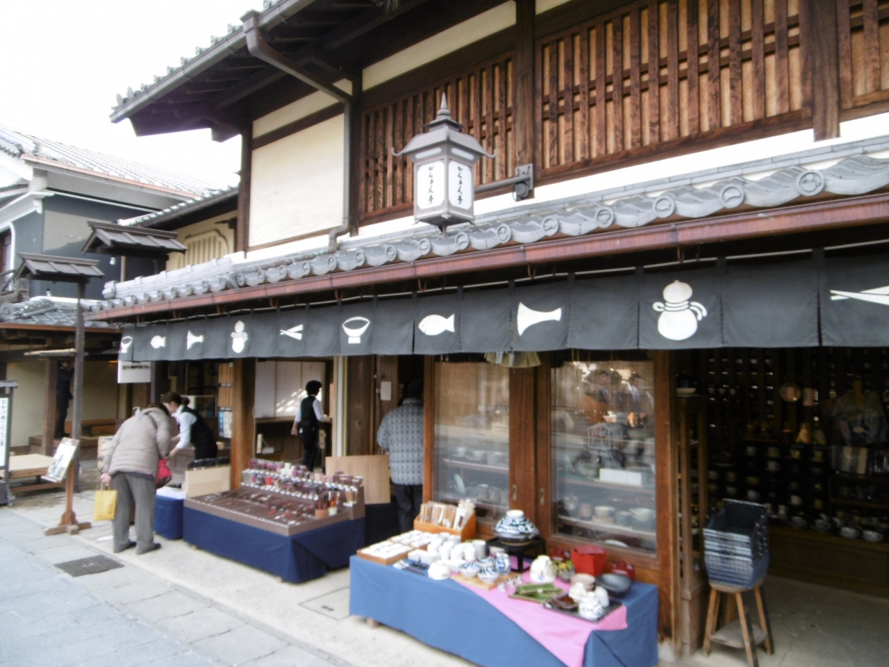 「他抜きだんらん亭」は和食器の店。店名の他抜きという言葉は、他人抜きを意味し、縁起物の狸にも掛けているそうで、家族団欒の楽しいひとときを演出するしゃれた器がいっぱい売っていた。親が箸を土産にしていた。女性客ばかりであった。