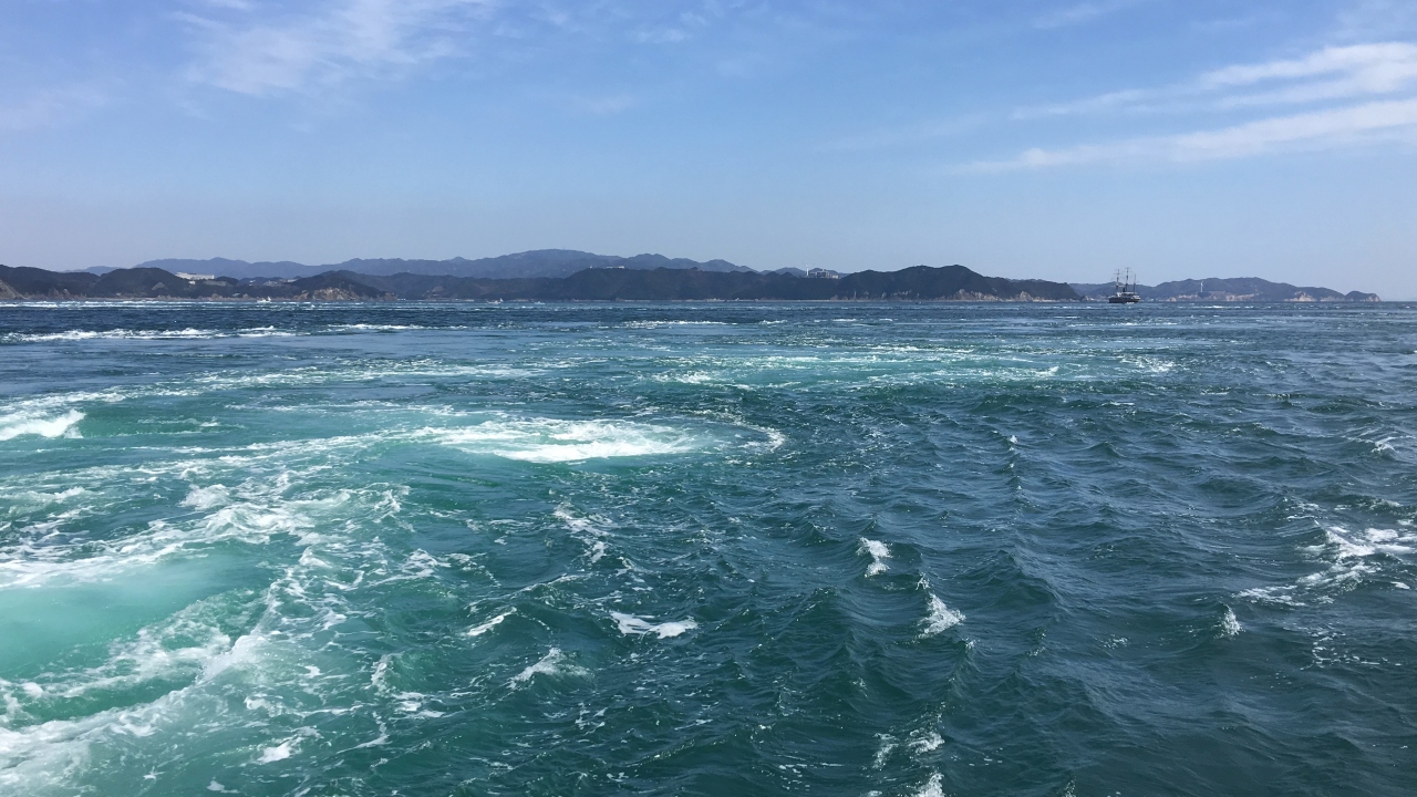 大潮の干潮が13時50分の日に14時出港の船にのることが出来た。ベストタイミングな時間で中々迫力のある渦潮を楽しむことが出来たが、残念ながら船が小さいので高さが低くもう少し大きな船でもう少し高いところのほうが写真を撮るなら良かったのかもしれない。しかし水面が近く迫力があるのはこの船かもしれない。
