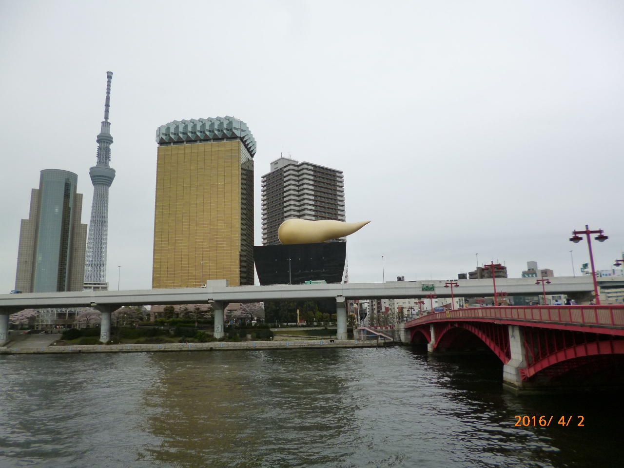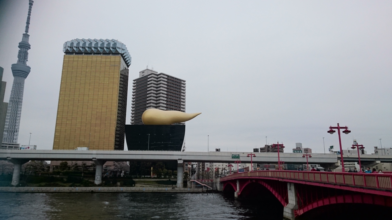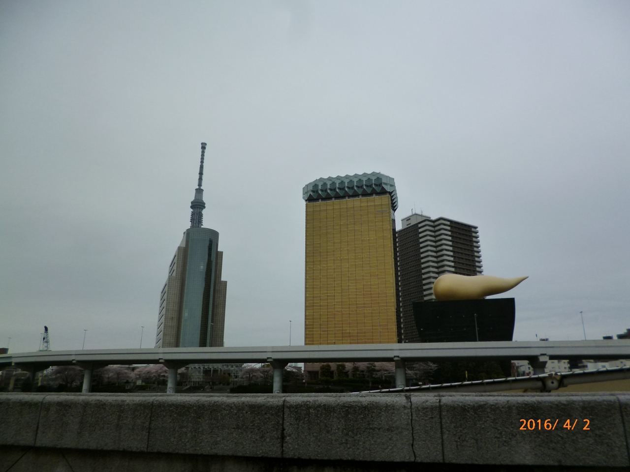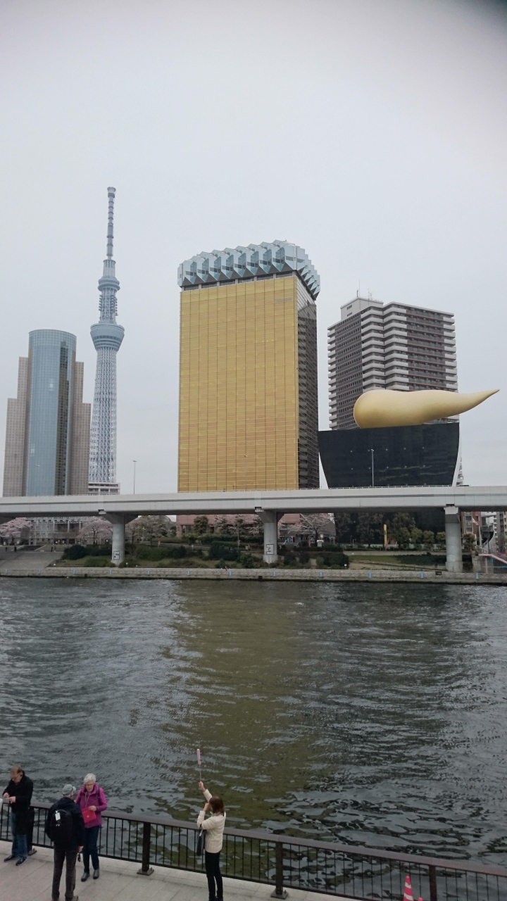 前回の東京観光時に東京スカイツリーに上ったので今回は景色的に綺麗に見える場所に行くことになり浅草観光も兼ねて都営浅草線・浅草駅より下車し吾妻橋・墨田公園入り口へ行きました。当日は曇り空で青空に映えるアサヒビールの金色炎のオブジェそして東京スカイツリーとはいきませんでしたが最高のフォトスポットでした。