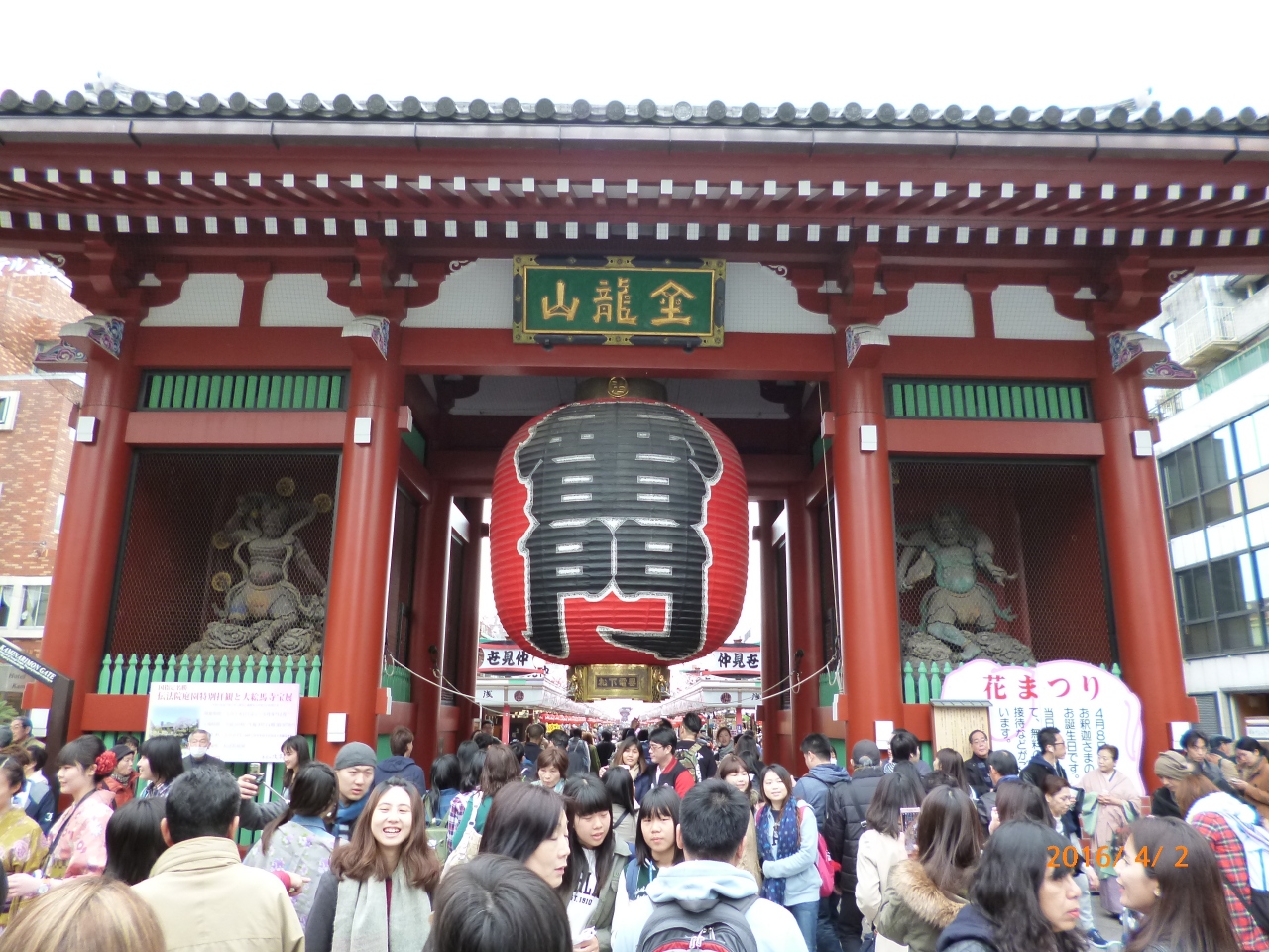 まずは入り口にある「雷門」です。この場所は参道入り口と大提灯・風神・雷神と見るべきものが多くて記念撮影の人気場所になっていました。