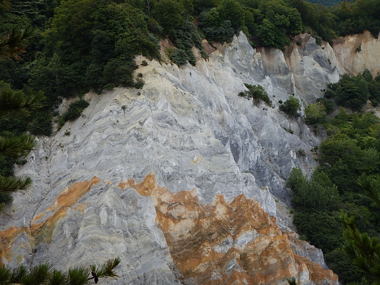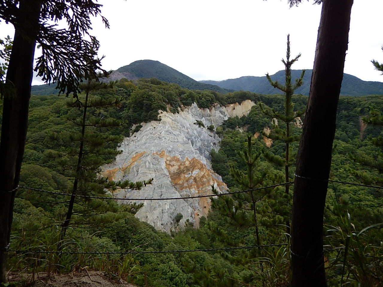 その先は山肌の一部が凝灰岩の露出により白くなっている。