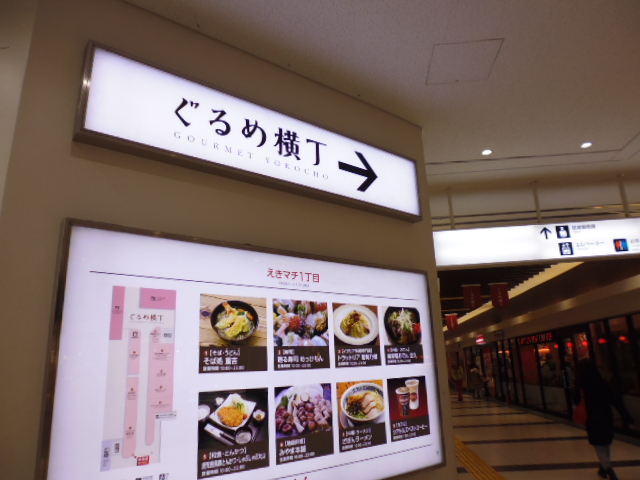鹿児島中央駅の改札からすぐにある飲食店の集まったエリアです。コーヒーからそば、とんかつといろいろな飲食店があるので駅利用の人に便利です。