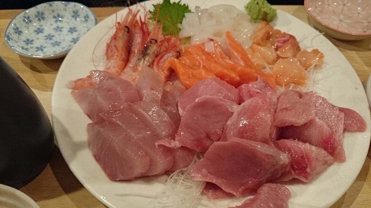 佃島のお花見後にぶらっと行くと、運良く待ち時間なしで入れました。お任せ刺身盛り、生牡蠣、焼きサザエなどを注文。刺身盛りは2000円で4~5人分はあると思います。マグロ中落ち、サーモン、赤貝、ハマチ、イカなどがてんこ盛り。一部、解答されきってない部分もありましたが、味に文句はありません。日本酒がぐいぐい進みます。煮込みなどを追加し、あっという間に2時間以上すぎてしまいました。