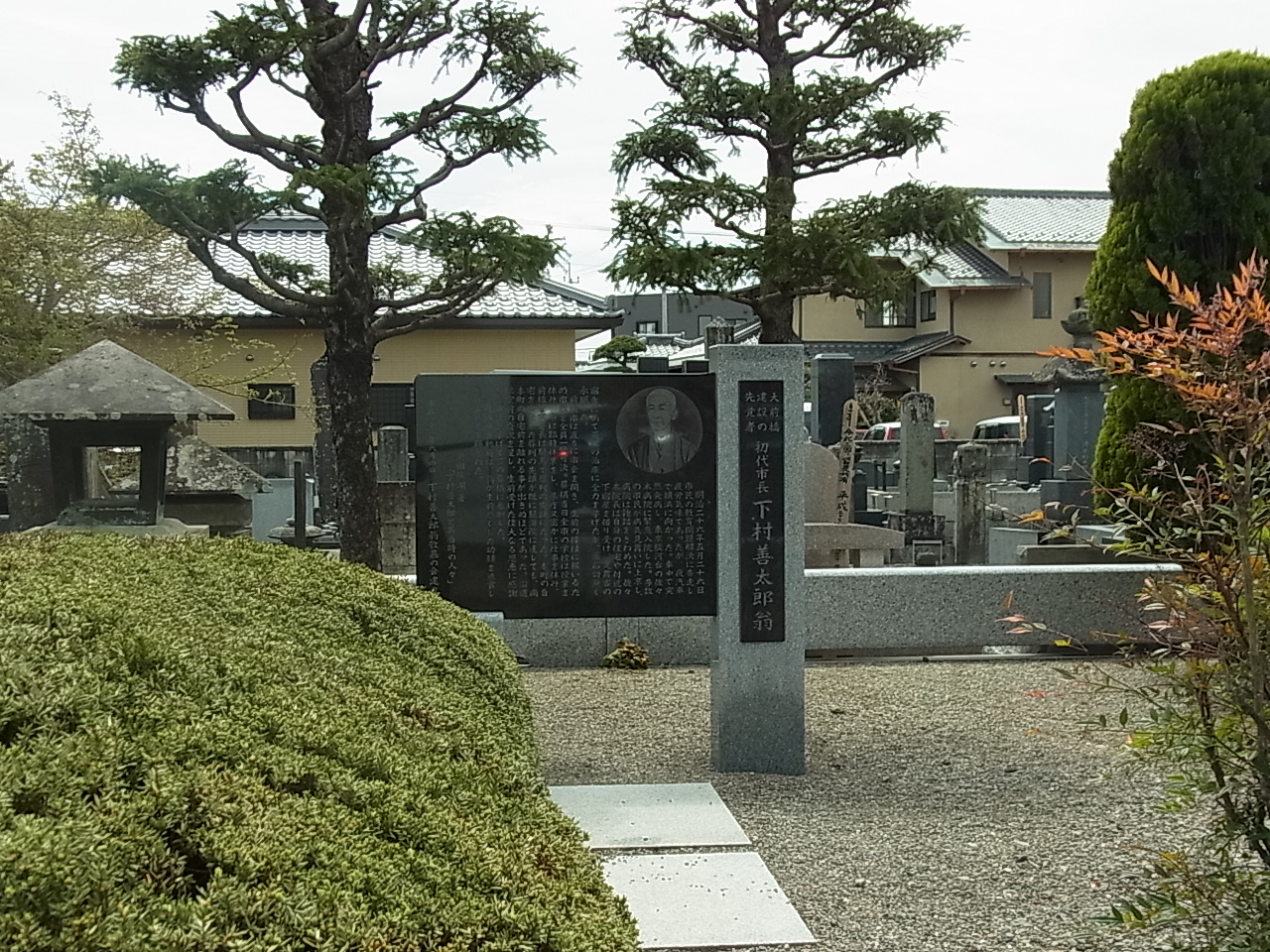 JR前橋駅から徒歩15分くらいのところにある龍海院という寺院に初代市長である、下村善太郎氏の墓があります。山門をくぐり少し躊躇しましたが墓地の方へ行くと案内版があるので迷うことはないと思います。一般的に公開されているようです。