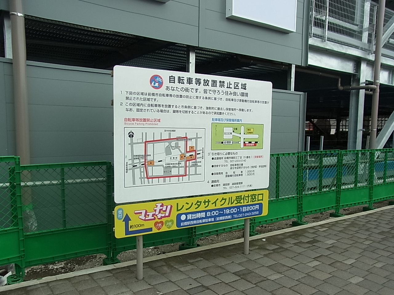 JR前橋駅の北口側の駐輪場で”マエチャリ”なるレンタルサイクルを入手可能。料金は200円。あちらこちらに史跡、名所があるのでバス利用も良いのですが、晴れていれば自転車の方が小回りが利いて便利かと思います。