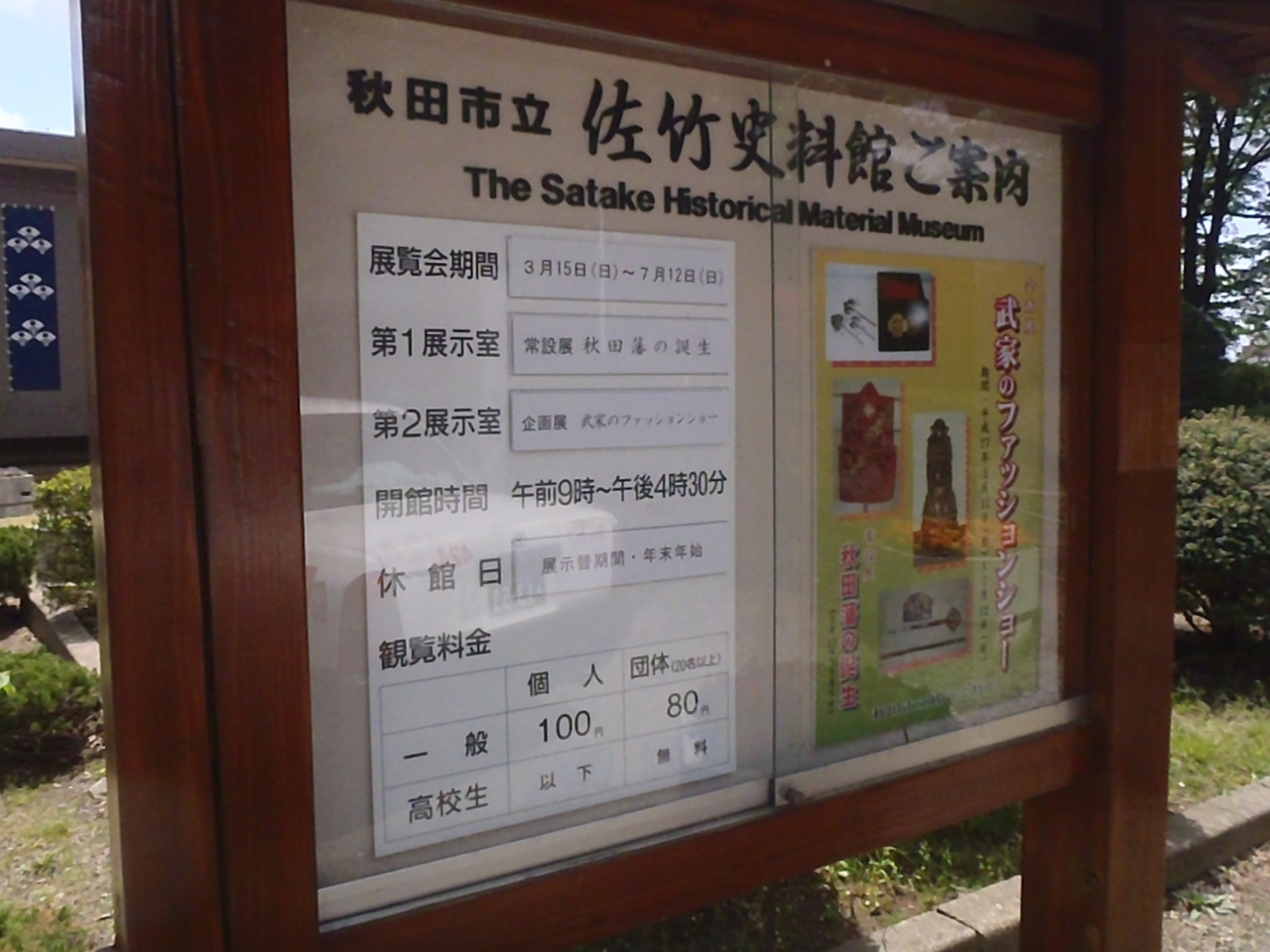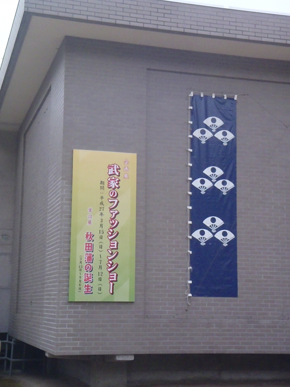 秋田藩二十万石佐竹氏の資料館で甲冑や陣羽織、装飾品や塗り物などを常設展示し、今回は武家のファッションショーと言う興味をそそる企画展が行われていました。
