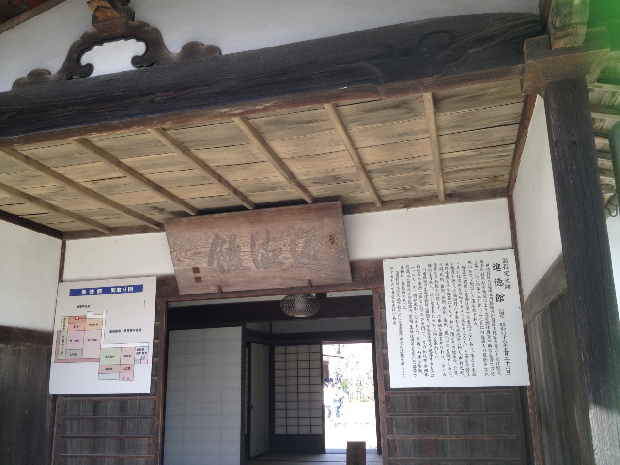 進徳館は高遠藩時代末1860年開校の藩校で国の史跡に指定されています。城郭などは明治初期に廃城令にて壊されてしまったのですが校舎は現存したもので外周のみですが公開され見学できます。桜満開の時に訪れたのですが建物の美しさと桜の群生がマッチしていました。