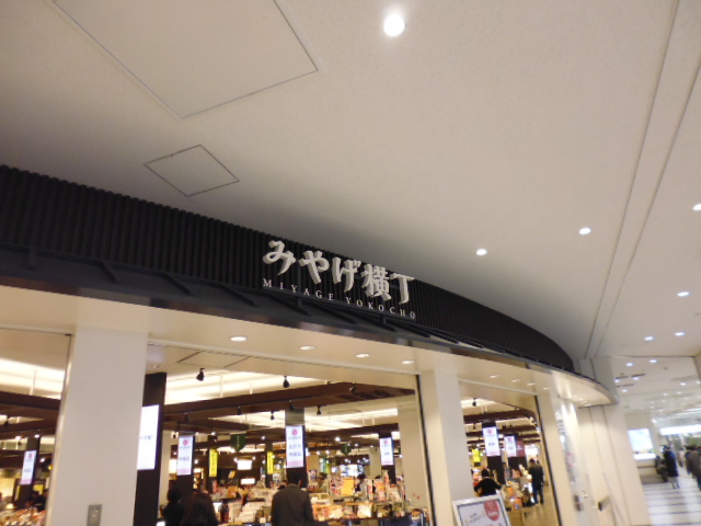 鹿児島中央駅の改札を出て目の前にあるのがここみやげ横丁です。鹿児島名産のいろいろな食べ物屋さんが競い合っています。