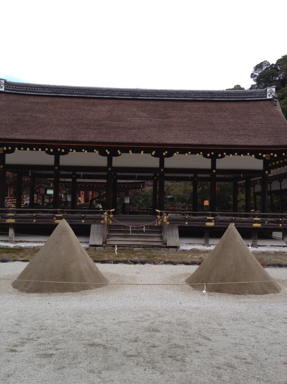 境内に入ると二つの盛砂が目に入ります。こちらの写真を待ち受け画像にすると運気アップとか。結婚式する方も多いみたいで遭遇する事が過去にも数回ありました。