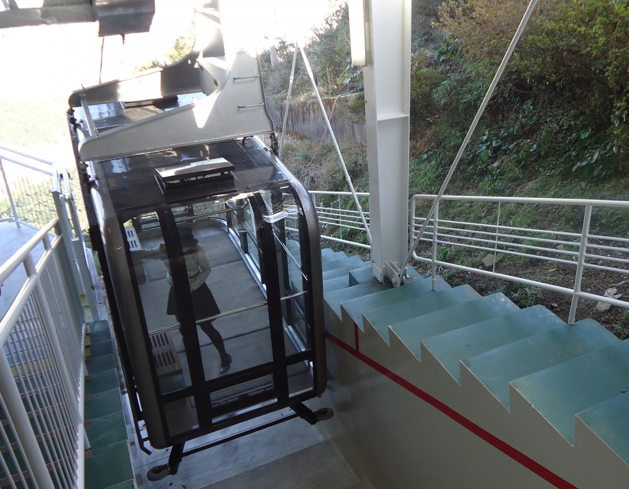 ロープウェイの淵神社駅待合所は、リニューアルして綺麗になっていました。